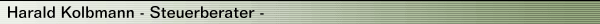 Diplom KaufmannHarald Kolbmann- Steuerberater -Emslandstrasse 2528259 BremenTel.: 0421 / 51 480 39Fax.: 0421 / 51 480 89email: mail@kolbmann-stb.de